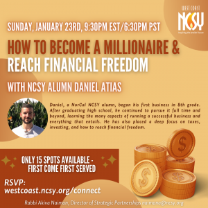 For More Information on NCSY Alumni please Contact Denise Badreau Tamam, Communication Director @ 310 229-9000 ext. 51202 or denise@ncsy.org
