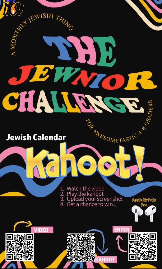 Winners will be announced (along with more games, fun and prizes) at a special Chanukah AFTERPARTY on Jan 2, at 5pm Pacific, 8pm Eastern at this link or ZOOM ID: